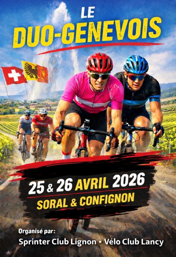 Une nouvelle édition du Duo Genevois aura lieu le week-end du 25 et 26 avril prochain. 1ère étape le samedi sur le parcours du Sprinter Club Lignon dans la région de Soral. Le GP du VC Lancy se déroulera quant à lui comme ces dernières années le dimanche sur le difficile circuit de Confignon.